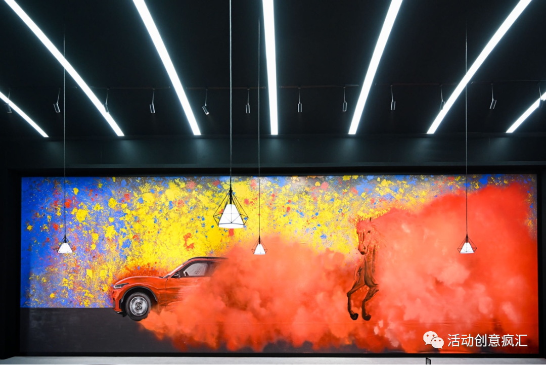 它的狂野大概诠释在现场的艺术品上。现场多位美院画家深受黑马精神启发,为Mustang Mach-E创作出多幅“活色生香”的作品,将真正不羁的黑马灵魂展现出来,尽显品牌细节。