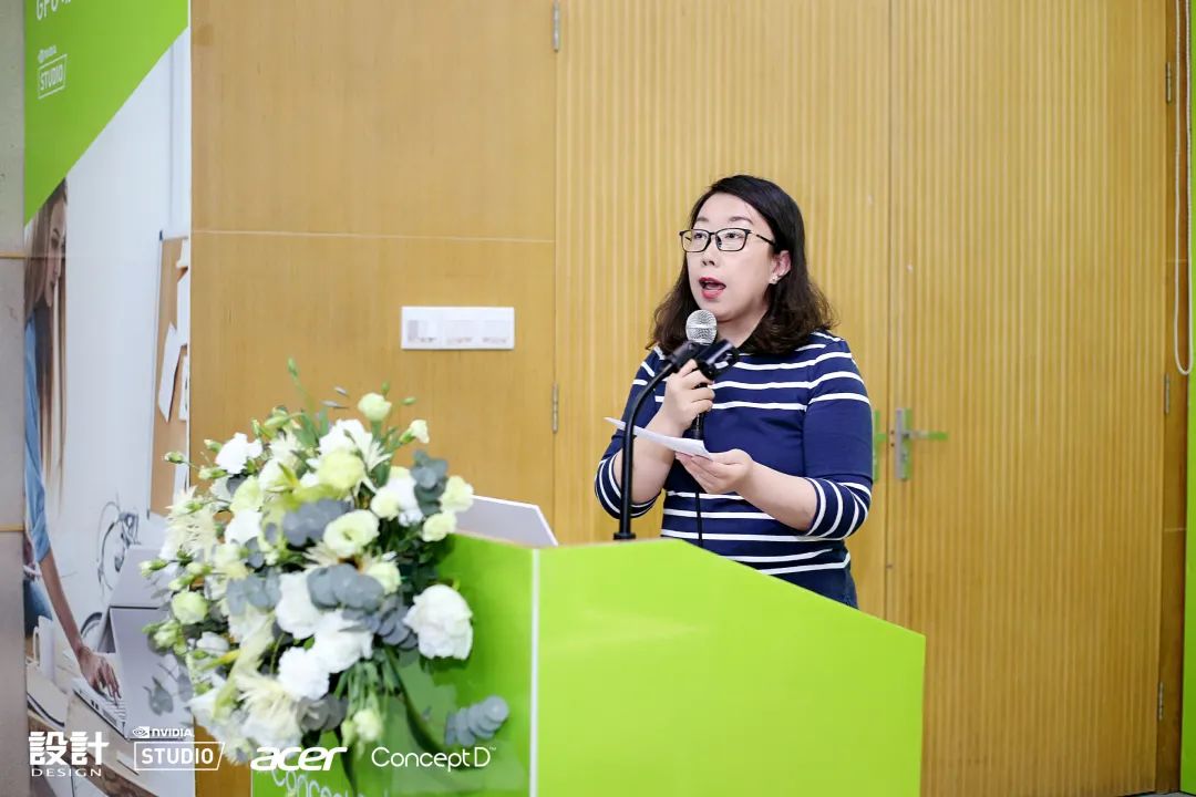 潘晶经理向大家详细介绍了产品:绿色包装-外包装90%使用可降解材料,实现对环境的保护。产品采用NVIDIA STUDIO显卡,帮助创作者更快的设计,屏幕色差小,工作静音,外观优美流畅,并具有60+软件可以采用RTX加速。