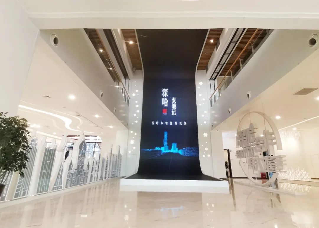 深哈产业园展厅采用先进的多媒体展示技术,打造集展示、接待、会议、休闲、娱乐于一体的多功能展厅,是深哈文化的空间载体,也是哈尔滨新区的城市客厅。