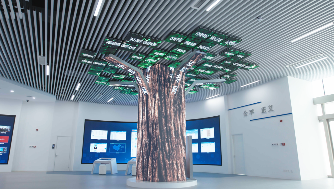 智慧法院实验室配合翻转LED大屏与画外音讲解,展示效果将科技与信息融合,传达效果也更加有效与直观。