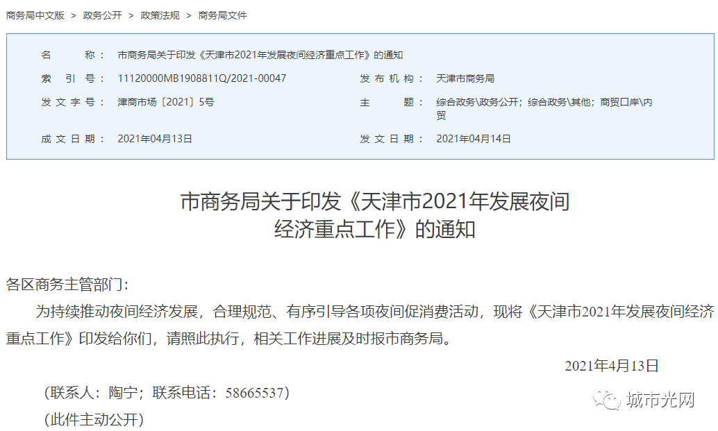 天津印发《天津市2021年发展夜间经济重点工作》