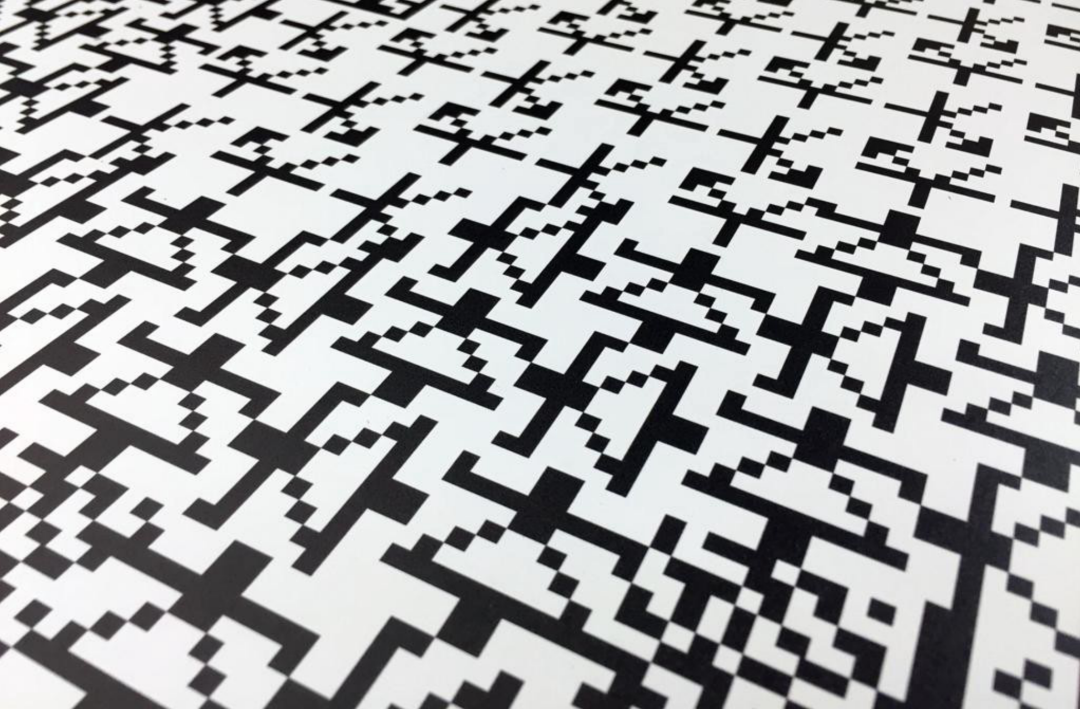 布尔顿发现了11个符号,其中3个符号出现了两种不同的形态。Ken回忆说,为了避免单调,随机旋转了3个符号。布尔顿突然意识到,这将使得他无法通过算法准确地重新创建艺术品。必须手动复原。