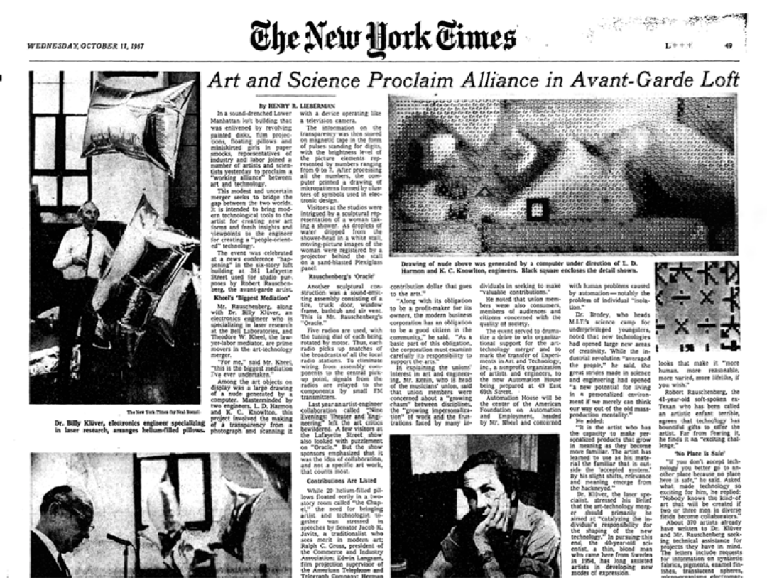 美国艺术家罗伯特·劳森伯格(Robert Rauschenberg)对这件事印象深刻,同年,当他发起E.A.T.(艺术与技术实验协会)时,以该图片作为他的新闻发布会的背景。随后《纽约时报》对图片进行了重制并发表。《计算机裸体》成为《纽约时报》发布的第一个全正面裸照。随后,贝尔实验室将这张照片放回到墙上。