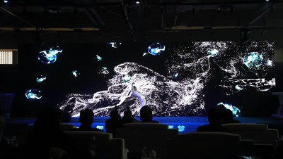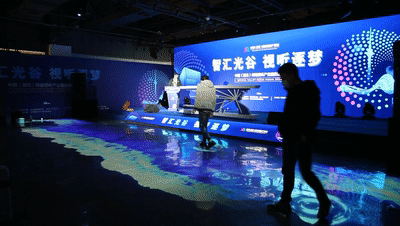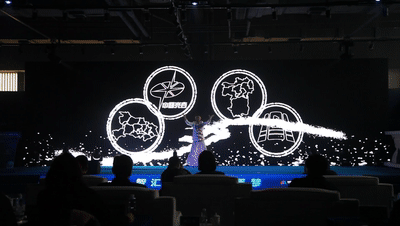 会场入口处,一段互动光影墙吸引着参会嘉宾的目光。