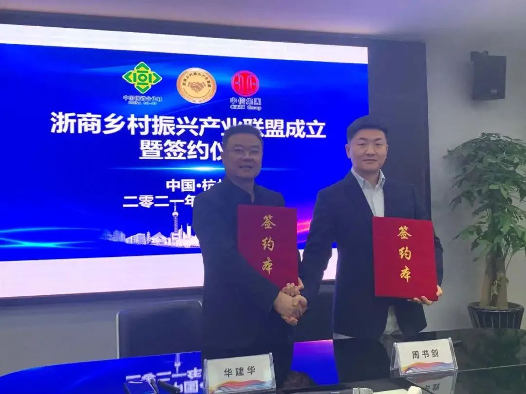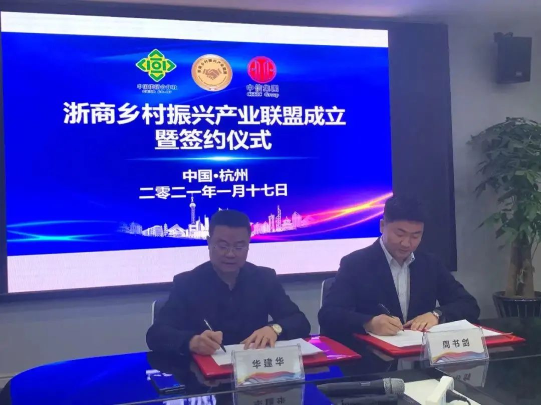2021年1月17日,由浙商乡村振兴工作委员会指导,杭州域农科技股份有限公司联合中华全国供销总社全国农民专业合作社直销中心、中信旅游集团主办,杭州水秀文化集团承办的浙商乡村振兴产业联盟成立暨签约仪式在我集团水秀大厦成功举办。