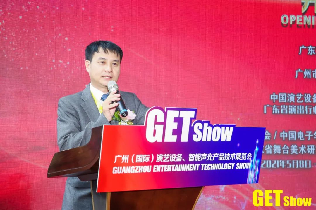 广东省文化和旅游厅副厅长赵红女士致辞,广东演艺设备行业是我省文化产业的重要板块之一,行业企业数量占全国的80%,为广东乃至全国的文化发展做出重要贡献。今年是“十四五”规划开局第一年,文旅产业正作为推动中国经济发展的重要引擎,演艺设备产业迎来新的历史发展机遇,此次展览组织周密、内容丰富,科技含量高,今天GETshow展会是全国文化+科技最优秀成果的集中展示,更是广东文化产业高质量发展的重要见证。