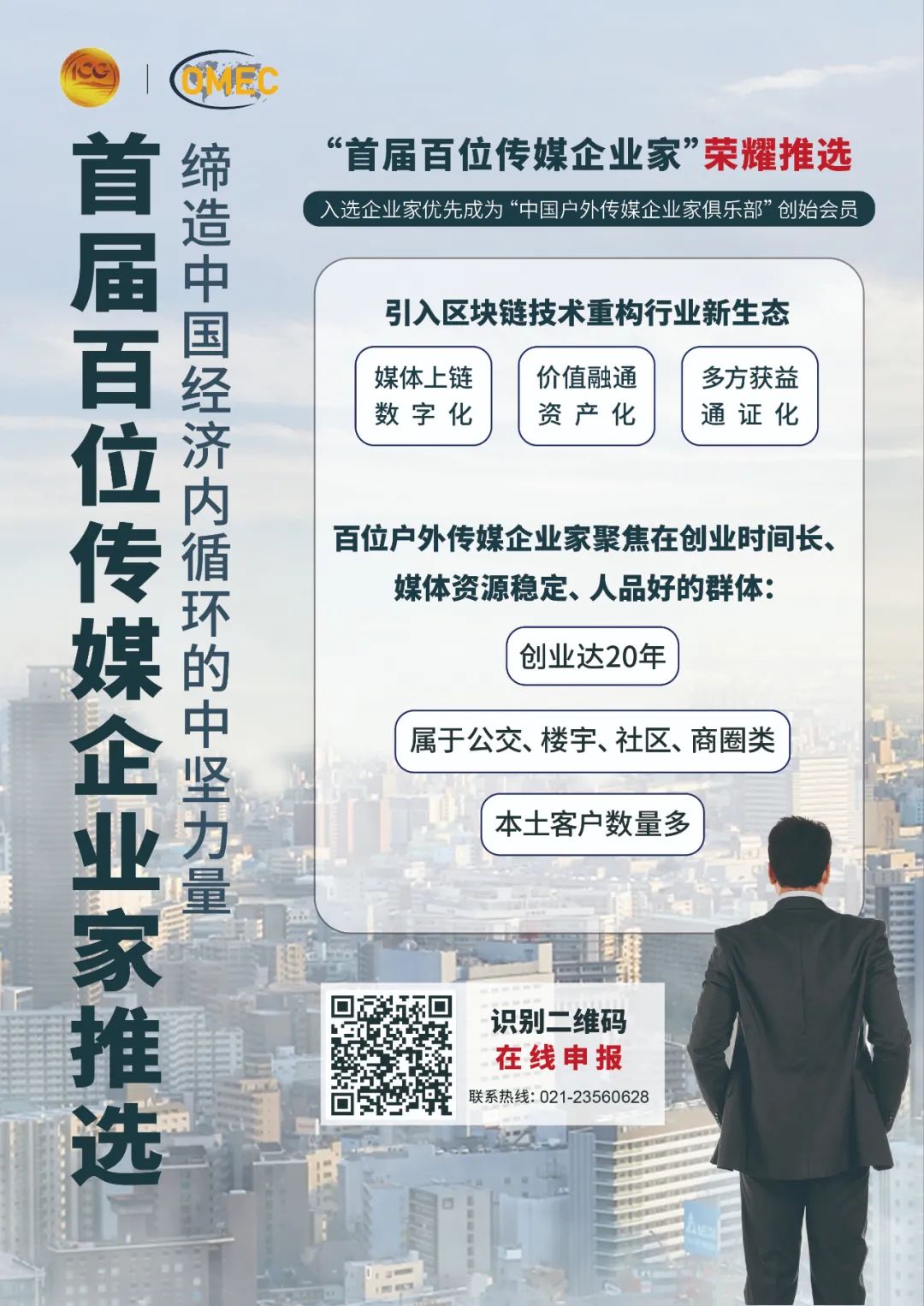 4、获得百位企业家入围优选提名,优先成为“中国户外传媒企业家俱乐部”创始会员