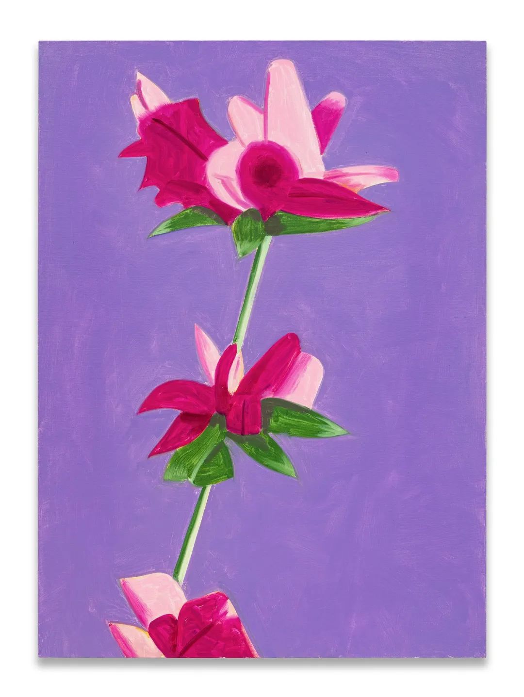 亚历克斯·卡茨,《淡紫色之上的杜鹃》,2020年作,油彩麻布,167.6 x 121.9 厘米 © Alex Katz / VAGA at Artists Rights Society