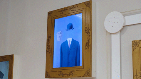 重复是马格利特的画作中一个重要的元素。如果你对其略有了解,就会发现戴礼帽的男人、青苹果、蒙头布的女人等元素的重复运用。图像清晰简洁,但也引起不安的想法。