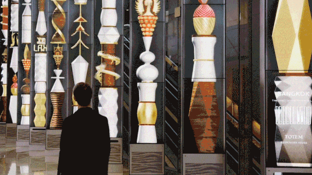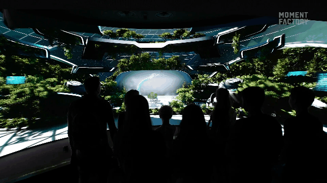 Moment Factory为登机口都设计了实时更新的互动墙,不但能捕捉行人的动态并融入画面,更能实时切换目的地的本土特色内容作为动画元素,使准备出发的游客身未动而心先远。