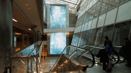 旅客们在等待航班的过程中,会遇到一片宁静和谐的绿洲,能看到有水流在楼层之间穿过,还可以与墙壁互动,等待似乎变得不再枯燥。