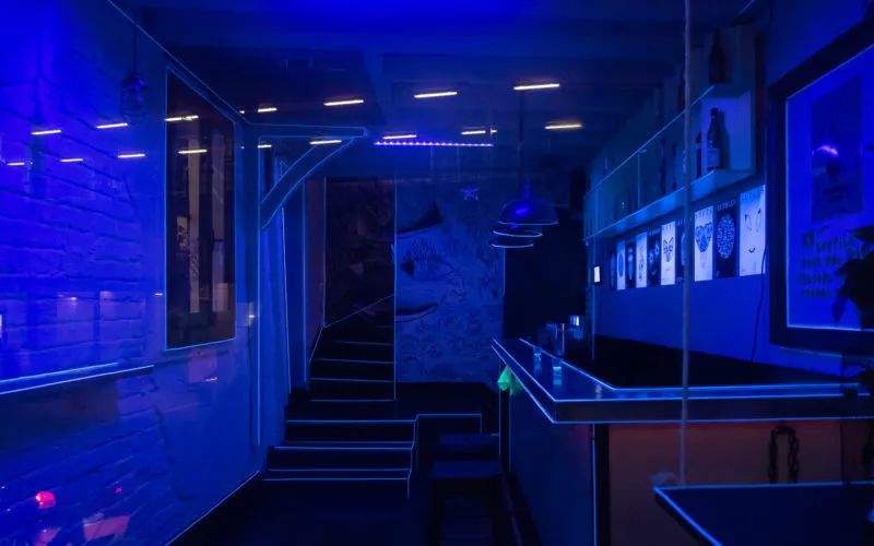 在这个装置中,艺术家使用紫外线和一根线创造了一个空间,从而带来了一种深度的错觉。里面有安全空间吗?在世界范围的流行病危机期间,紫外线作为一种消毒剂有着悠久的历史,包括消灭SARS-CoV-2病毒。