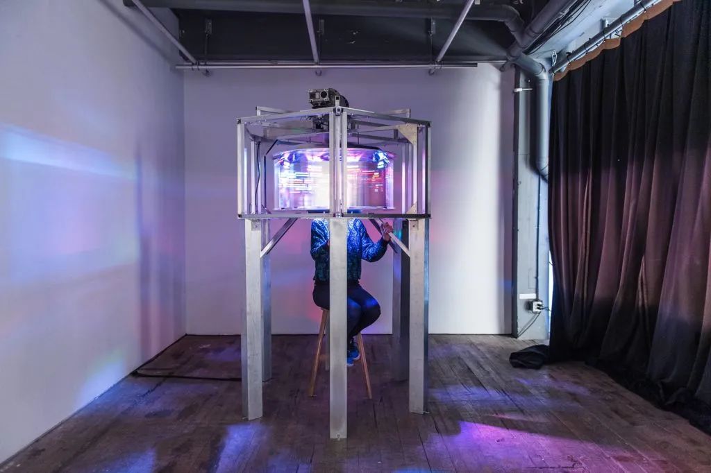 通过将光学和动力学过程集成到一个设备中,参观者可以在这个设备中插入他/她的头部,人脸被分解成大量的碎片。访问者被投射到一个反乌托邦的未来,在未来的社交媒体上,只有我们以映像的形式保留下来的自拍痕迹。我们将注定成为一个唯我主义者,在互联网末日的星际虚空中搅动。