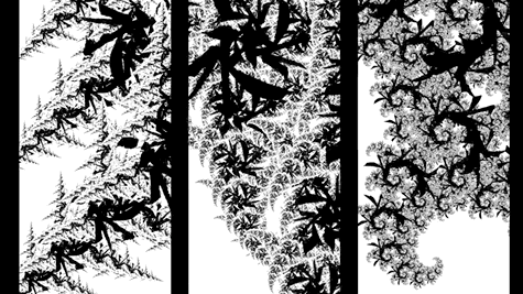 数字媒介创作人王志鹏的创作方向包括声音视觉互动现场,算法生成图像,虚拟现实动画等。在三屏幕声音影像《永》中, 以书法的“永”字作为元素,分形的形态变换作为表现方式,形成似象非象的多维图像,呈现出试验性的声音影像作品。