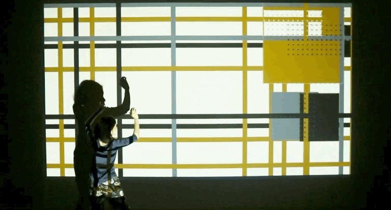 艺术家章聿的交互式装置作品灵感来自于荷兰艺术家蒙德里安在20世纪30年代创作的著名红、黄、蓝色方块和网格抽象画。