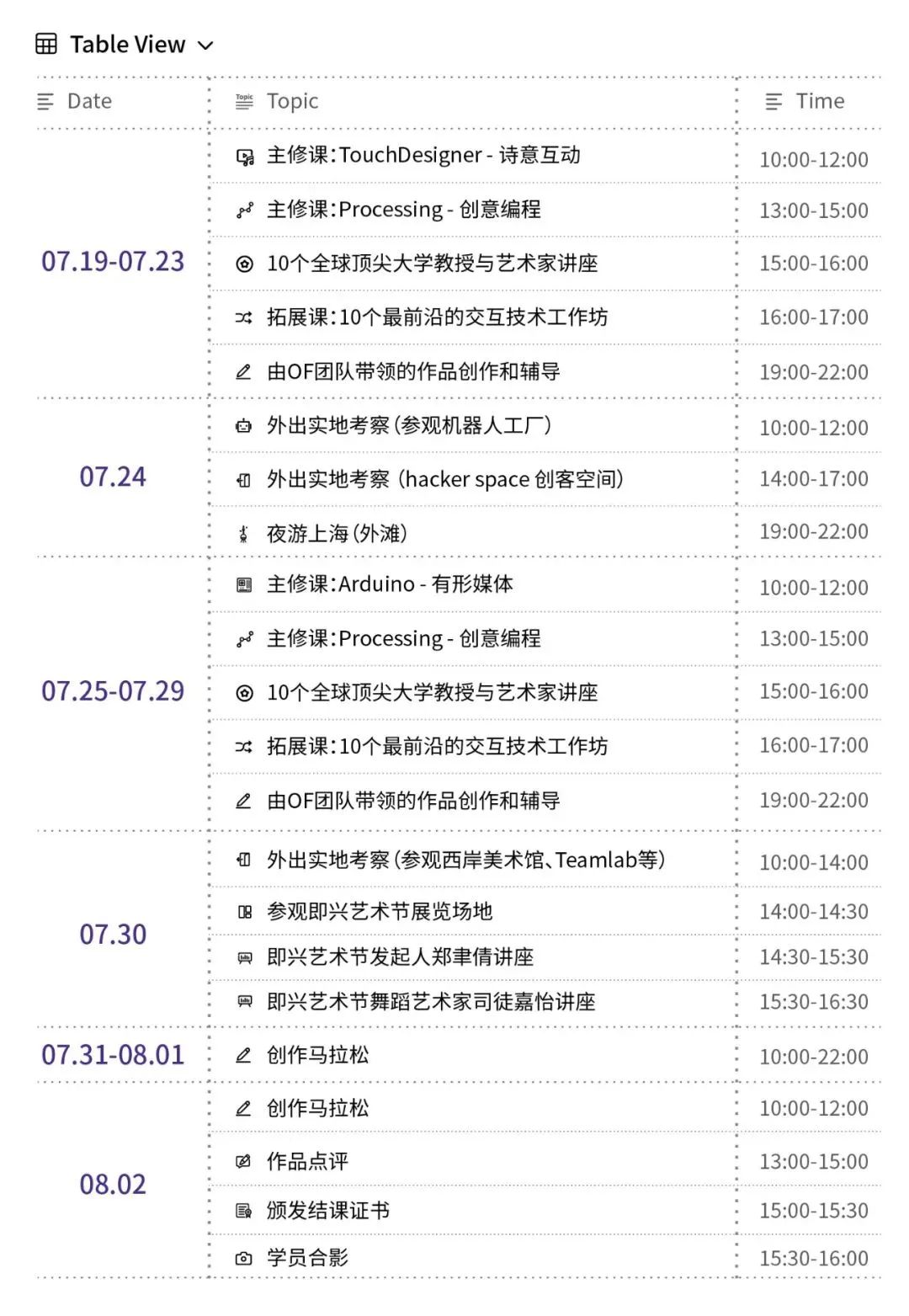 ■ 丰富跨学科内容:3门主修课程,10个艺术家讲座,10场工作坊,4场外出实地调研,让你了解交互艺术的方方面面。