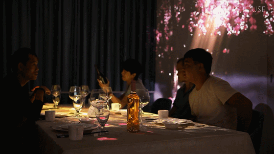 整个房间只设一张餐桌,餐厅的墙壁和餐桌由虚拟影像组成 ,周围会自动切换场景,仿佛置身于一个虚拟的世界中,器皿,美食与动态影像互相搭配,在吃饭的同时 ,甚至还会有蝴蝶、鱼儿逗留穿梭。