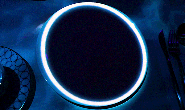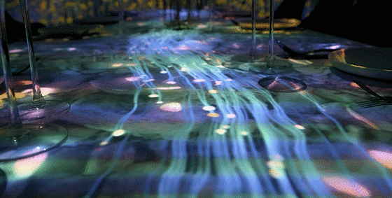 不仅如此,投影图像还会受到就餐者行为的影响。当用餐者移动盘子位置时,“水流”也会相应的改变方向。