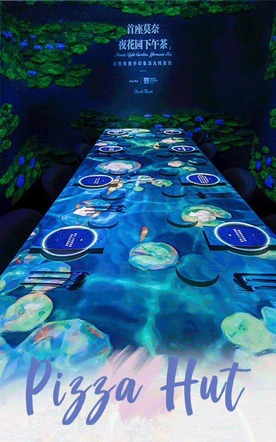 莫奈曾用画笔定格的睡莲花园,必胜客用全感官沉浸式投影科技把莫奈花园搬进必胜客餐厅。