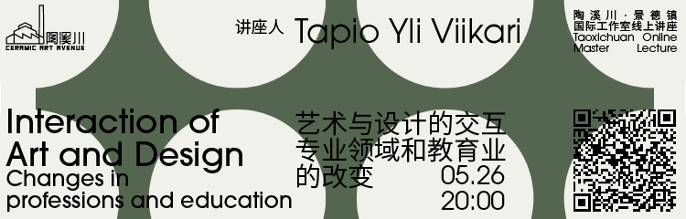 陶溪川·景德镇国际工作室线上讲座本期邀请到芬兰阿尔托陶瓷艺术荣誉教授,Tapio Yli-Viikari。于2021年5月26日晚上8点,在陶溪川国际教育—国际云讲座平台带来主题为《艺术与设计的交互——专业领域和教育行业的改变》(Interaction of Art and Design,Changes in professions and education)的讲座。Taoxichuan·Jingdezhen International Studio is very pleased to invite Professor Emeritus of Ceramic Art, Aalto University, Finland, Tapio Yli-Viikari. The title of this week’s lecture is “Interaction of Art and Design,Changes in professions and education”. The lecture will be held on Wednesday 20:00(BST), May 26, at Taoxichuan International Education Program —— Master Online Lecture.讲座中,Tapio 会分享他50年从业经历中观察到的设计和教育领域转变,以及任职期间对芬兰设计领域和教育行业变化的见解。他还将介绍他参与过的艺术与设计项目的案例,并介绍他观察生活,研究材料和秉持原创设计的方法。In the lecture, Tapio will share his 50 years of experience in the field of design and education, as well as his insights into the changes in the Finnish design field and education industry during his tenure. He will also introduce the cases of art and design projects he has participated in, and share his ways of observing life, studying the materials, and creating original design.