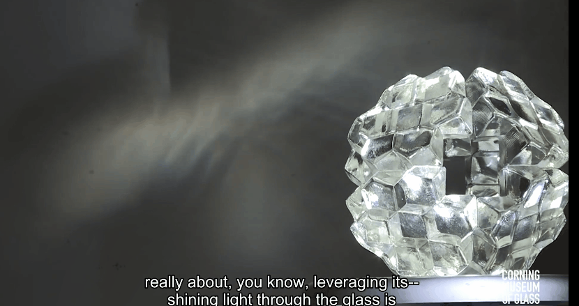 2017年,艺术家Fred Kahl使用数控雕刻石墨模具,将玻璃铸件组装成一系列热组装的几何结构。成品玻璃片将用作产生发光的透镜:通过玻璃照射强烈的光线并进行移动造成不同的光折射效果。