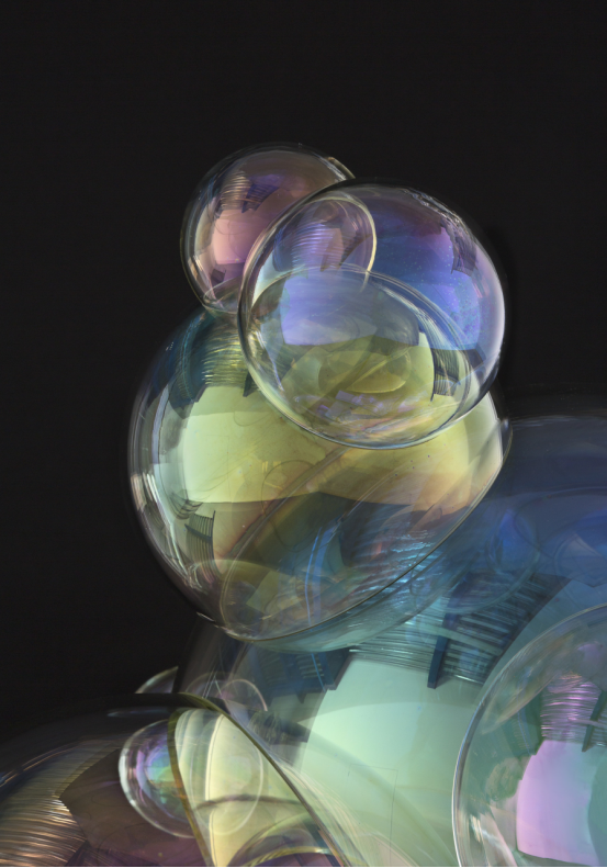 作品以玻璃形式捕捉细腻的气泡,选择了具有讽刺意味的坚硬且不容易破坏的材料:彩虹化的盐酸盐玻璃。细腻的彩虹作品引用了十七世纪和十八世纪绘画中的气泡——一个象征生命脆弱性的虚荣符号。然而,在Verhoeven双胞胎的手中,泡沫不仅代表生命的脆弱,而且还庆祝你第一次遇到碎片时所体验到的惊奇感。