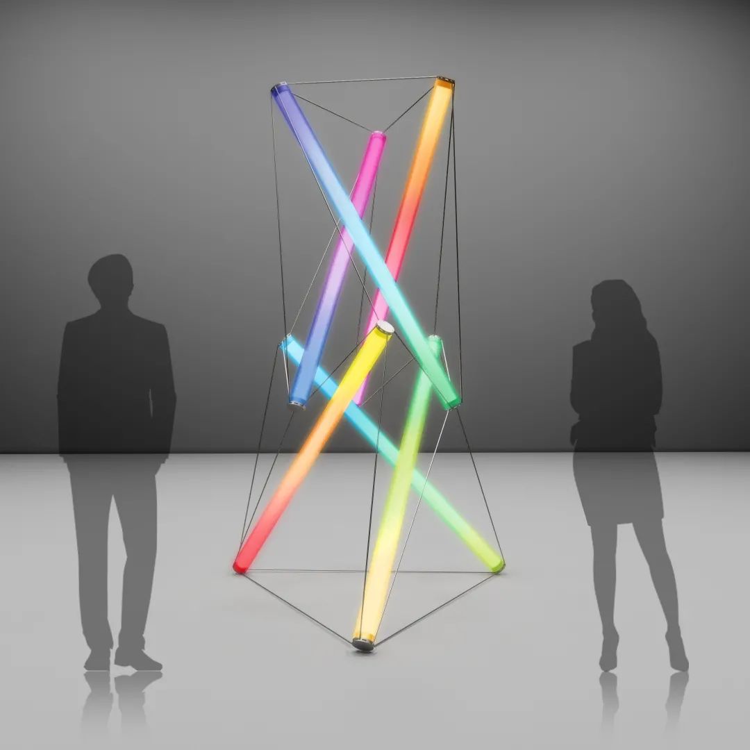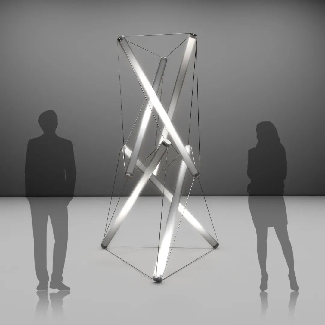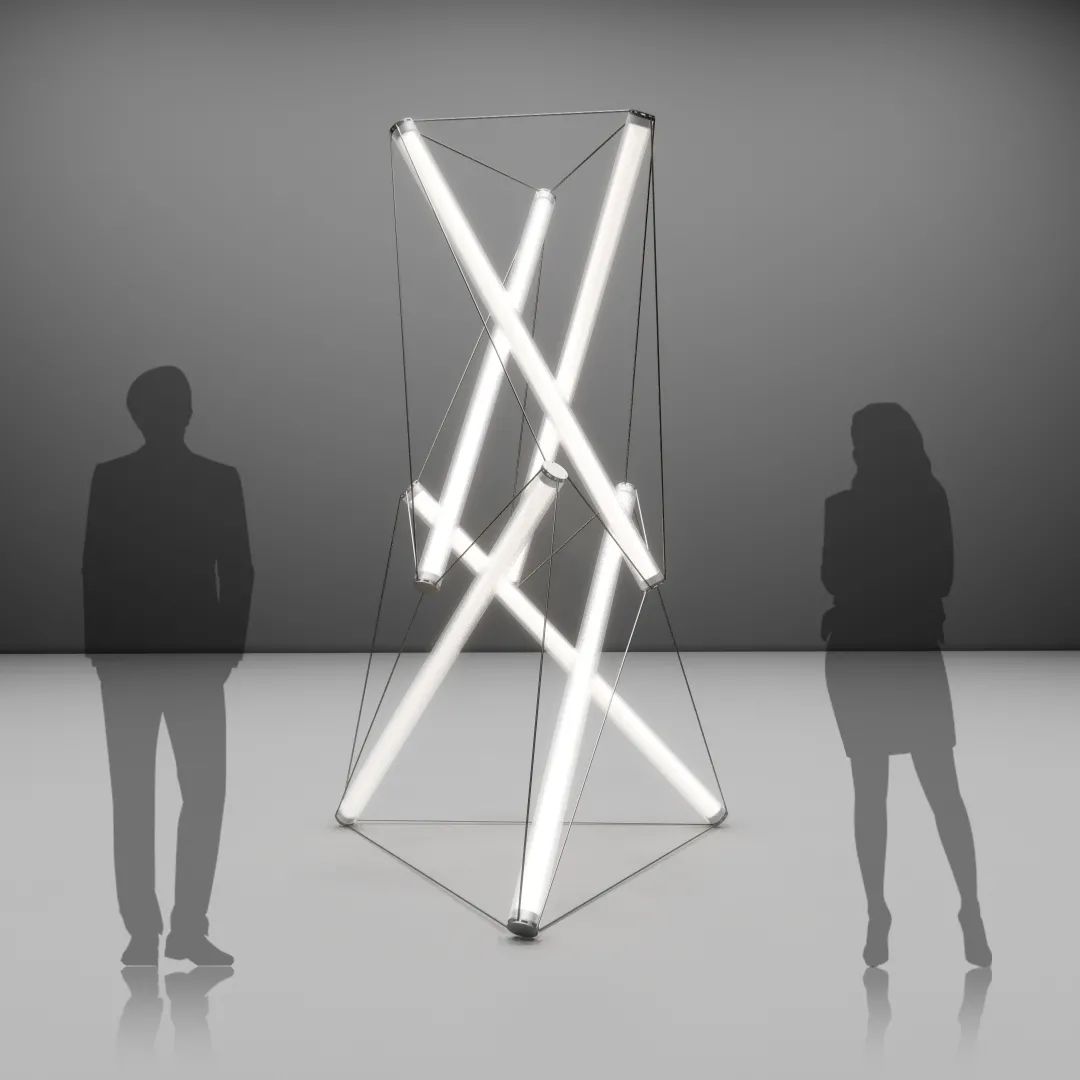 具有未来感,在空中悬浮的灯管,与周围的人群发生对话。