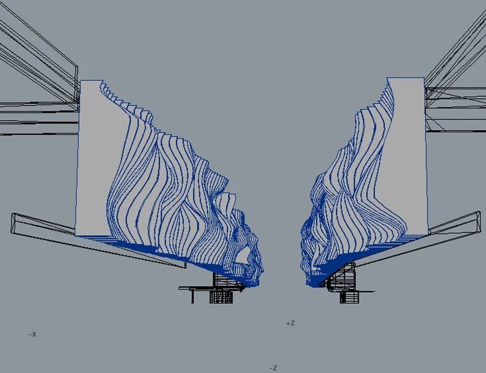 500多个单独的拉伸膜翅片组成了鳍片,它模仿了美丽光滑、起伏的峡谷壁。