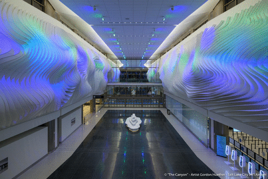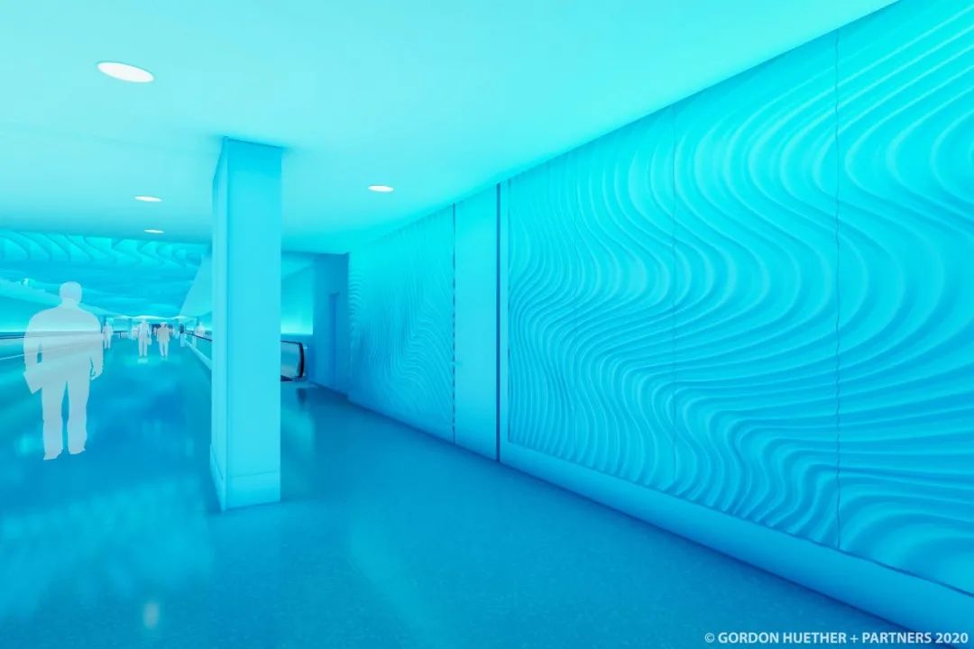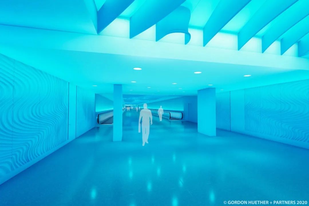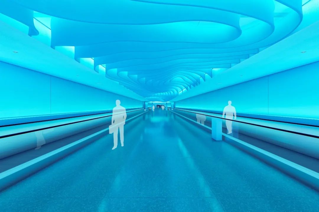 空间装置《River Tunnel》反映了流经犹他州峡谷的河流,并以1,000英尺长的中央隧道为特色,该隧道将旅客从主要航站楼连接至北廊。预计2024年建成。