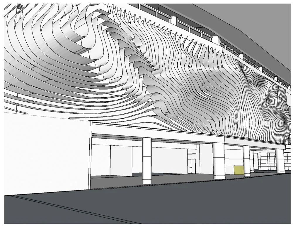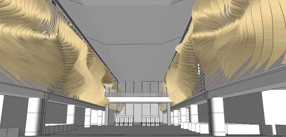 该装置可以视觉上将主航站楼和北部大厅的艺术特征联系在一起,从而为顾客创造了协调一致的体验。