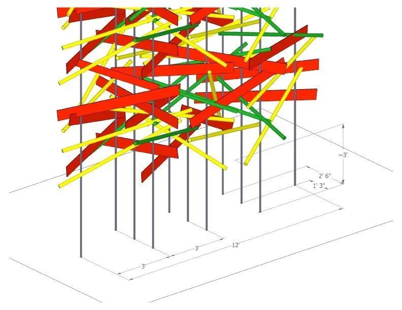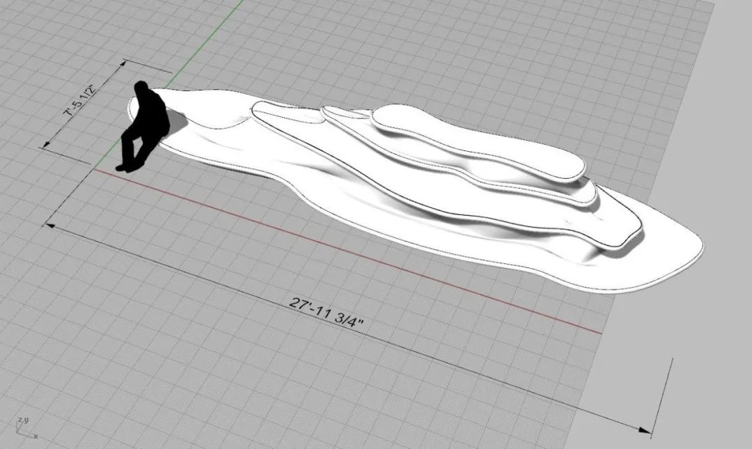 柱板由一种复合材料制成,高18英尺,最宽处17英尺。这些长椅同样由复合材料制成,长28英尺,宽10英尺,高5英尺。