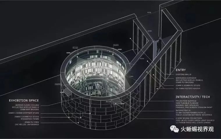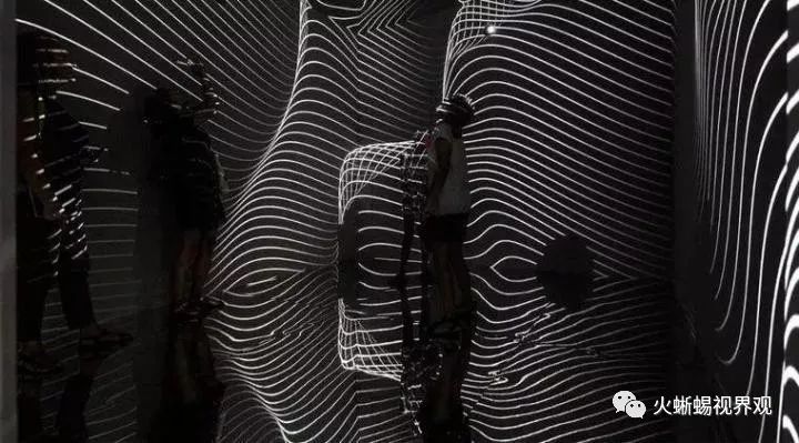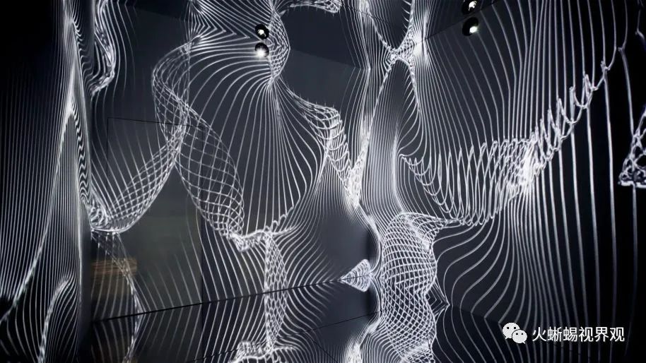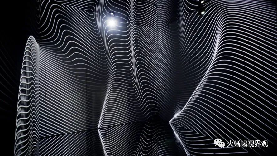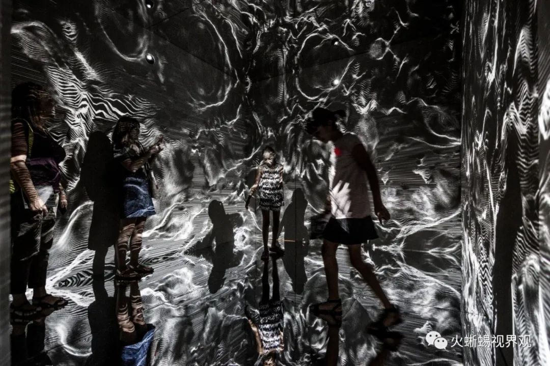 “Infinity Room”(无限空间)是一个封闭的立方体,通过四台激光投影仪将影像投射在正方形房间的墙壁上,而地板和天花板则被镜子覆盖。这些精心编程的光序列模糊了物质和虚拟领域之间的障碍,标志着投影技术与物理空间界限的融合。