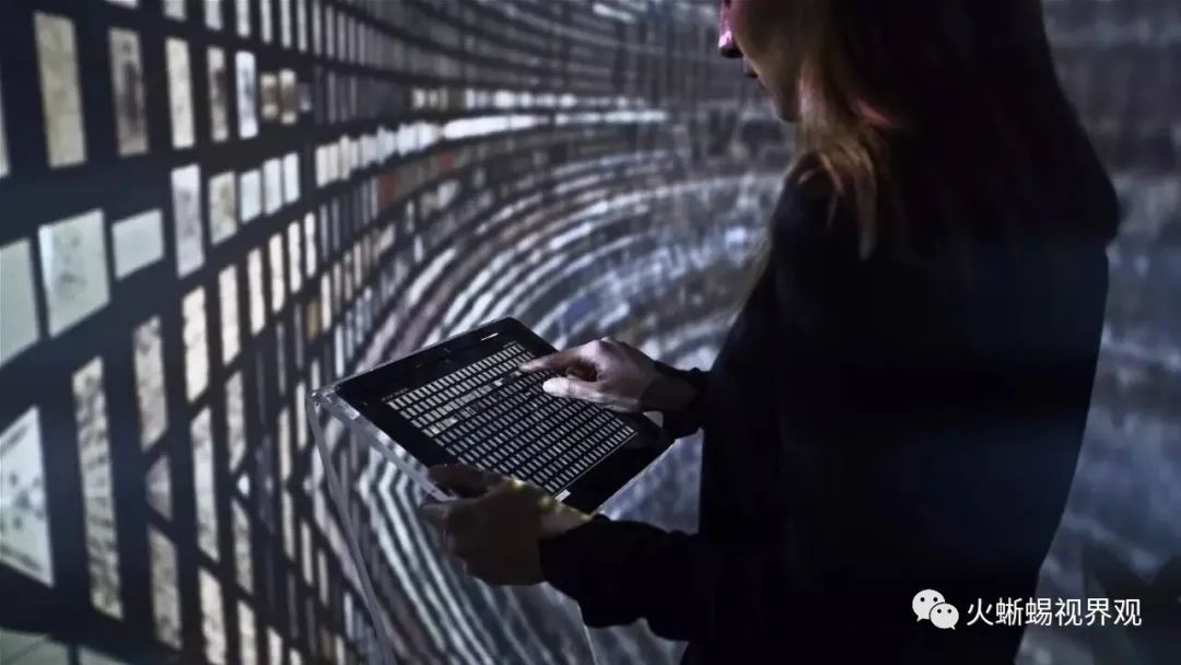 通过数据可视化设计系统,庞大的数据文件转化为令人震撼的沉浸式空间,把观众包围其间。同时系统还呈现了每张图片的信息,观众可以与这些视觉资料实时互动,既呈现了艺术与科技的无限魅力,又传达了历史文化的浩瀚苍穹。