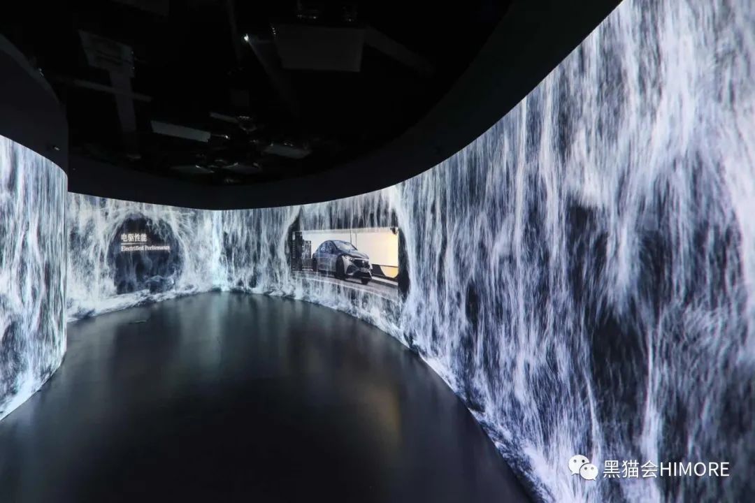 梅赛德斯毫不吝啬地向公众展现了EQ家族作为先锋豪华的造物者。“直线属于人类,曲线属于苍穹”,展馆设计灵感启发于EQS弓形车身。