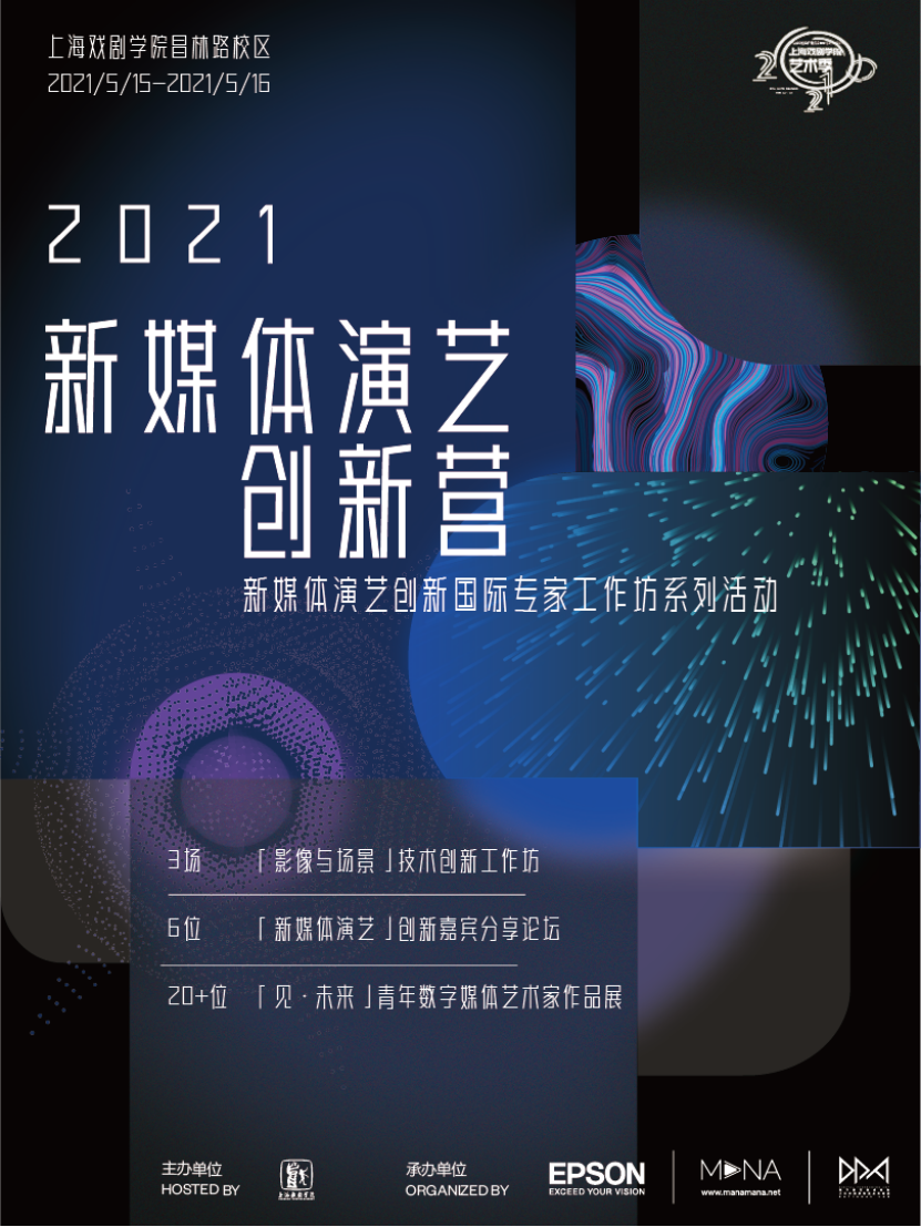 2021年5月15日-16日,一场新媒体演艺行业的盛会:2021新媒体演艺创新营正式向公众开放。此活动由上海戏剧学院创意学院主办,爱普生(中国)有限公司、MANA全球新媒体艺术平台等单位承办,共包含1场新媒体演艺创新国际专家论坛、3个技术创新工作坊和20多件青年艺术家脑洞创意作品。