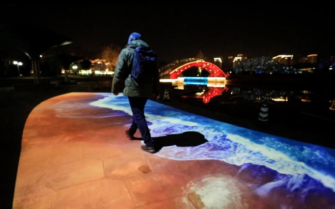坐落于浙江省嘉兴市的明湖公园,融合了湿地生态景观和自然田园风情,湖水漾漾,绿道悠悠,水系、绿地、建筑、小桥、岛屿错落有致,一派江南水乡的旖旎风光,是很多游客和当地居民理想的观光休闲地。其中,最吸引人的景色之一就是由爱普生与嘉兴明湖公园联合打造的“互动地幕投影秀”,在7台爱普生激光工程投影机强大的画面表现力助力下,为嘉兴市民带来了美轮美奂的夜晚休闲场所。