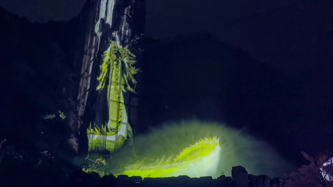 而每晚七点上演的《龙境》光影秀,可谓为景区填上了一笔浓墨重彩的风景。它以上古神龙为主题,利用瀑布等自然环境,结合多重现代投影科技手段,讲述了一段跌宕起伏的神龙故事,勾画出一幅如梦似幻的云门仙境,情节演绎栩栩如生,仿佛身临其境。