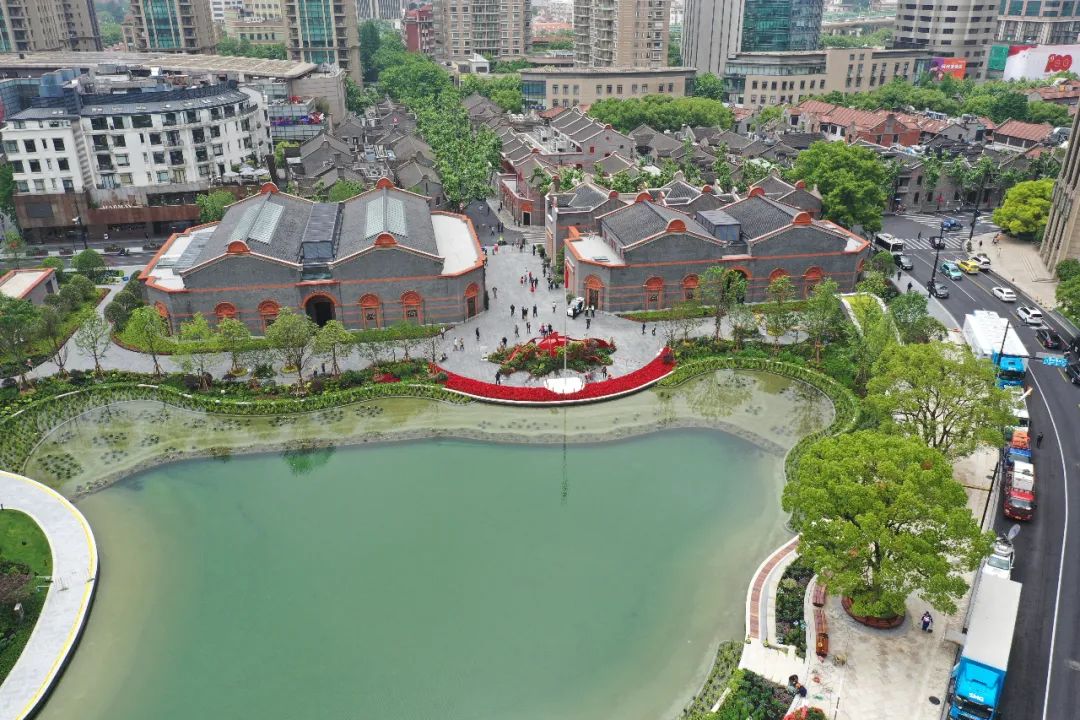 一大会址与新建展馆隔街相望、交相辉映,共同组成中共一大纪念馆