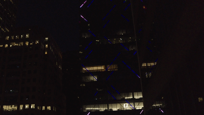 灯光覆盖了整个42层楼外表的多个棱面,既表现出建筑特点又营造出优雅、闪耀的动感视觉。