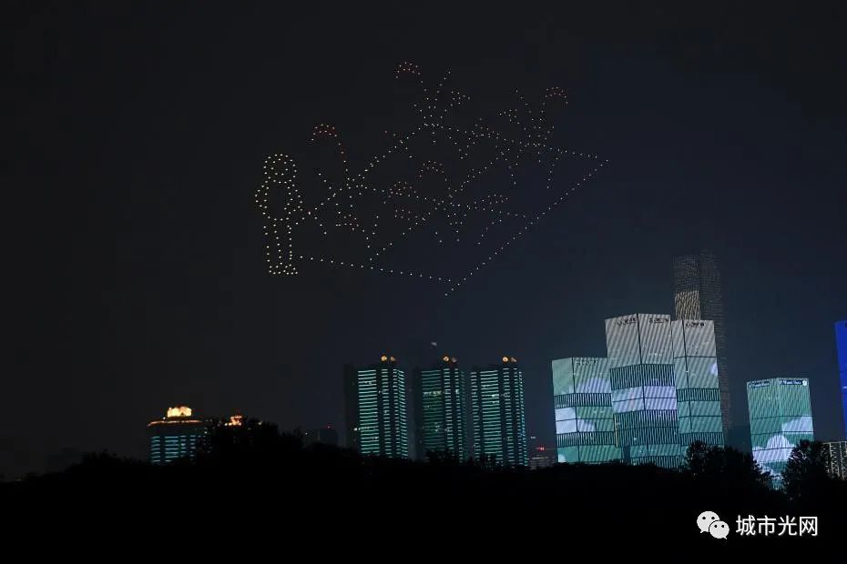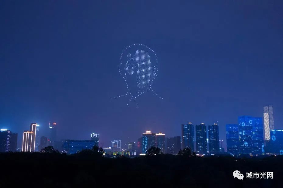 无人机表演的最后,520架无人机在湘江上空组成袁隆平院士的画像,表达对袁隆平院士的悼念。