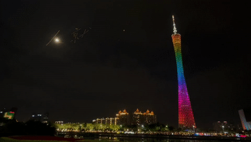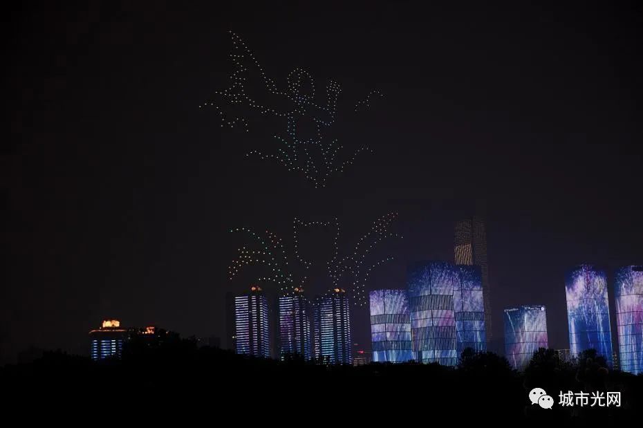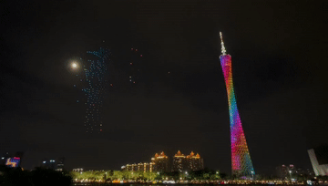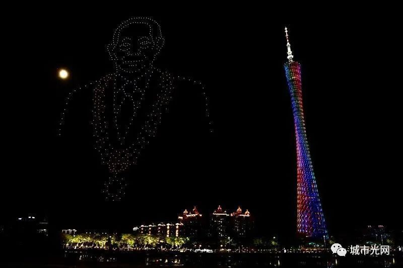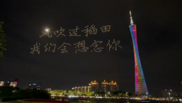 5月25日晚,500架无人机自广州海心沙腾空,化作稻菽千重浪、田间耕耘人,纪念“杂交水稻之父”袁隆平院士。广州塔旁,无人机缓缓升空,组成一片翠绿的稻田,随着稻穗成长,翻起千重金黄稻浪。