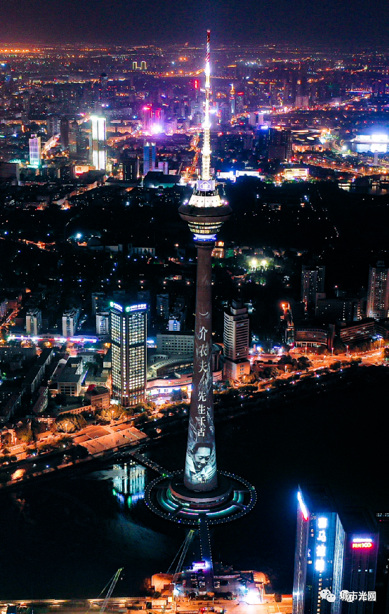 伴随着缅怀袁隆平院士的音乐响起,5月22日晚八点,天塔塔身被点亮。
