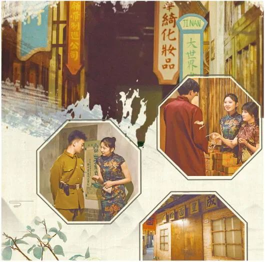 “可以拥有一个与现实完全不一样的社会背景及人物设定,这对我来说非常有新鲜感。”进剧场前,在高校工作的周蕴对《成丰街25号》充满期待。《成丰街25号》围绕济南民族资本家苗世远创办的成丰面粉厂展开,剧场利用1000平方米场地搭建了80年前济南成丰街的原貌,有警局、洋行、民居、饭店、车站等十几个场景。各种道具、声音和灯光的烘托也一应俱全,现场可以感受到昼夜交替、食物香味、蝉鸣鸟叫等,为体验者呈现出一个充满烟火气息、车水马龙的成丰街。周蕴和其他五位观众需要换上剧中人物的衣服并被随机分为3个不同阵营的角色,在观赏演员表演的同时,还得根据线索提示竞选成丰面粉厂厂长,以此推动整体剧情发展。