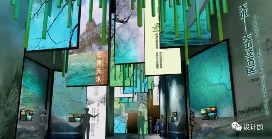 在展馆的当中有一部分需要做成体验区,添加高科技元素,让参观者自由体验(触摸、尝试、观看等),为其营造舒适、亲切的感觉。