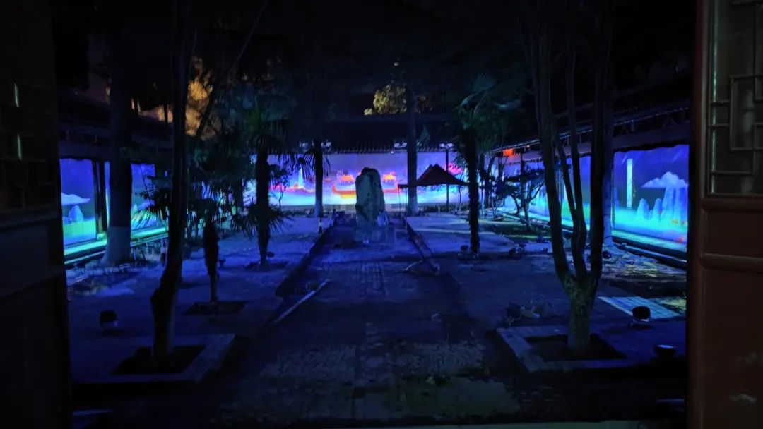 本剧突破了传统舞台观演模式,以《西厢记》旧址普救寺为舞台,通过Hirender媒体服务器等声、光、电设备打造出亦真亦幻的“梦境”场景,将舞台氛围烘托到极致。