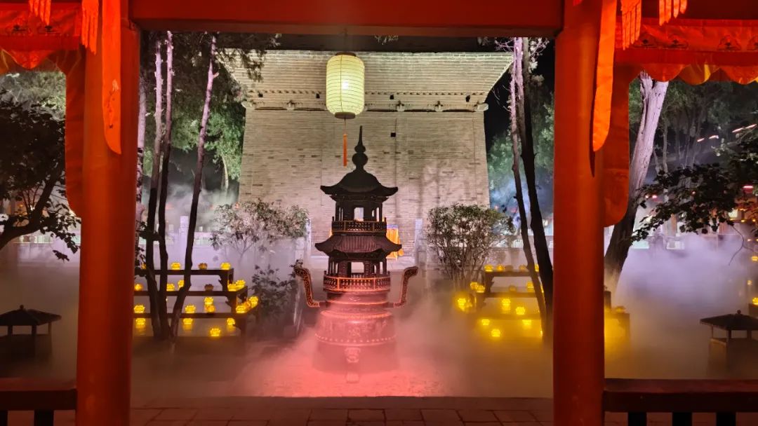 光影交相呼应,剧情婉转递进,现代科技与流光溢彩的历史文化融合,让游客仿佛置身于故事当中,从第一视角重游崔莺莺和张生的爱情之路。