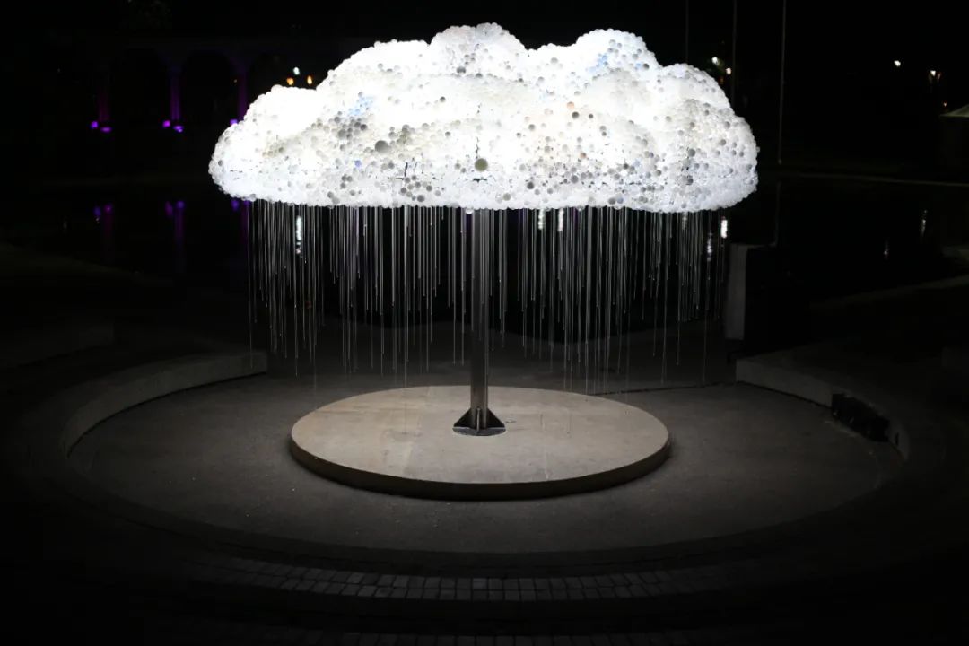 “Cloud”是艺术家凯特琳·r.c·布朗(Caitlind R.C. Brown)的大型互动装置。作品由1000个灯泡和另外5000个由公众捐赠的烧毁灯制成,利用日常的家用灯泡和拉弦,重新想象其潜力,创造了这个作品。从周围的社区收集了烧毁的白炽灯泡,整个作品与非艺术家们建立了非正式关系,不仅表明了集体思想的力量,还强调了可持续性是人类与环境之间不断存在的关系。