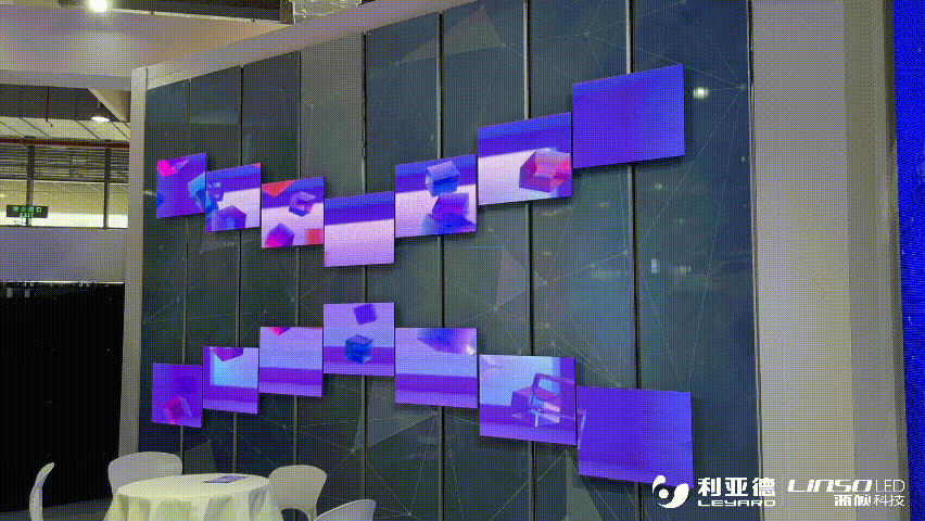 此次展会上,最耀眼的展品,当属利亚德·蓝硕文化科技自主研发的、采用最小间距P1.875的“创意上下滑动显示屏”,屏幕分辨率达2730*512。这款产品是在国内专业展会中作为主秀产品展出。