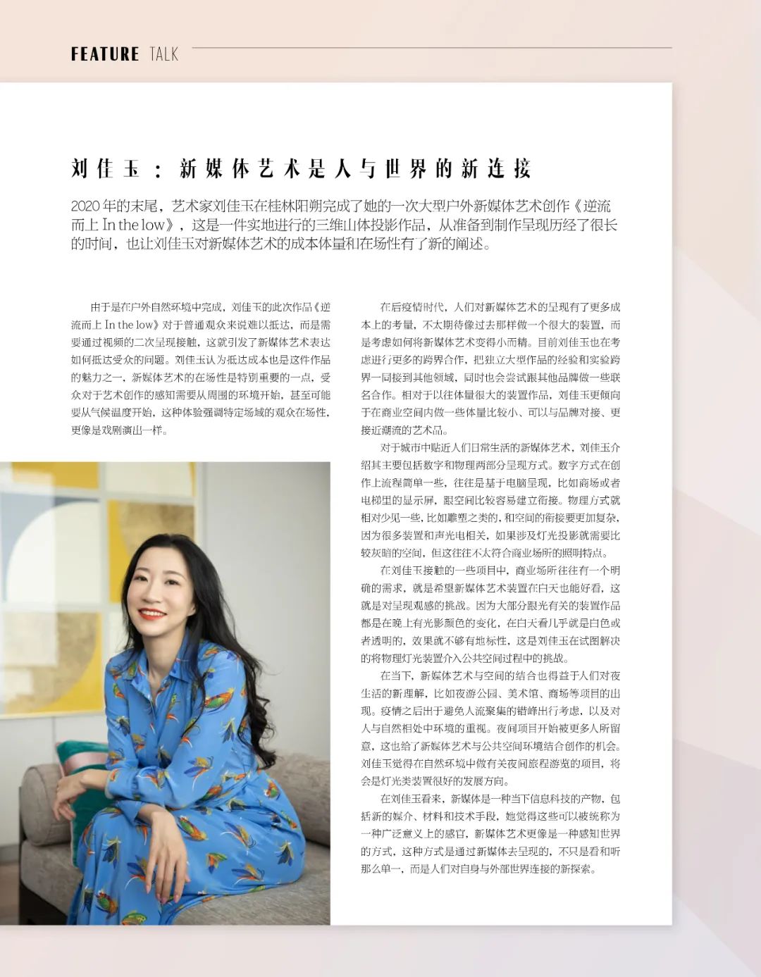 《嘉人》杂志6月刊FEATURE TALK章节带领我们跟随刘佳玉一起重新探讨了新媒体艺术的成本体量和在场性。