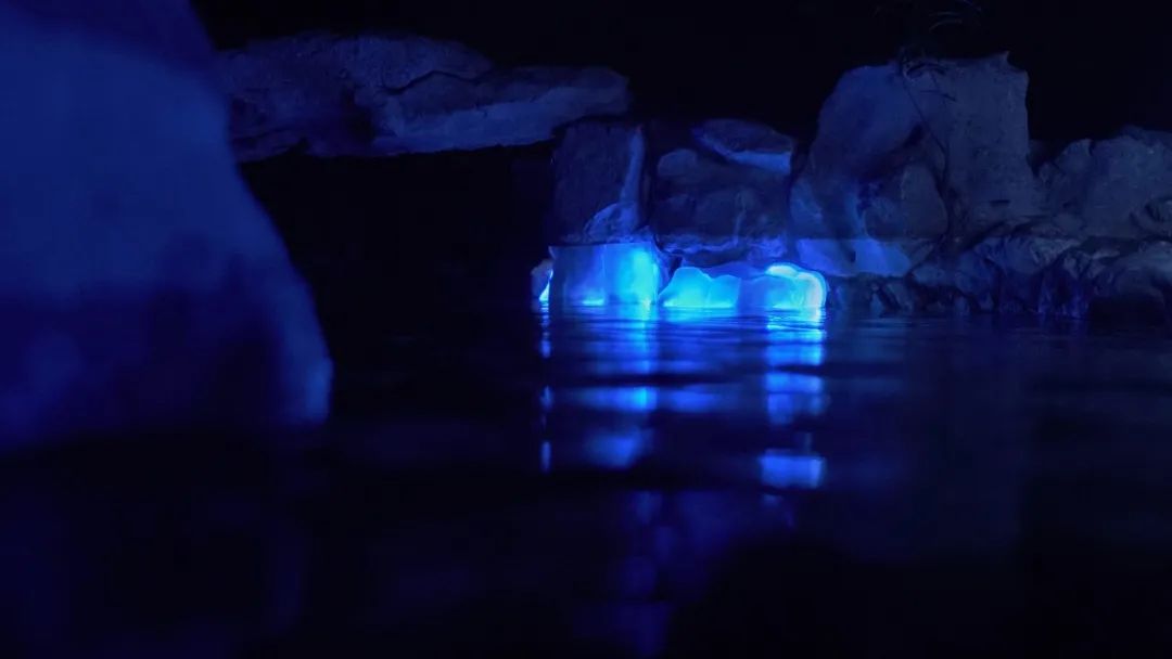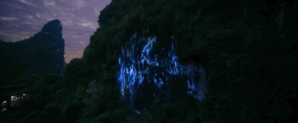 2020年年末刘佳玉在桂林阳朔完成了自己的大型户外新媒体艺术作品“逆流而上”,这是一件3D山体投影作品,作品展出于桂林阳朔。在几亿年前,桂林地区的山体隐藏于海平面之下,通过几亿年的变迁,这些山体破水而出。这件大型户外新媒体艺术作品正是表现了漂浮于山体表层的水流动态。在国内疫情得到有效管控的情况下,更多的人们开始国内游的度假方式,所以这件作品展示在一个度假空间中,同时这块裸露的山体也是度假空间中的攀岩场地,在作品展出期间我们也进行了攀岩表演,希望透过作品在疫情当下传递“逆流而上”的精神主旨。
